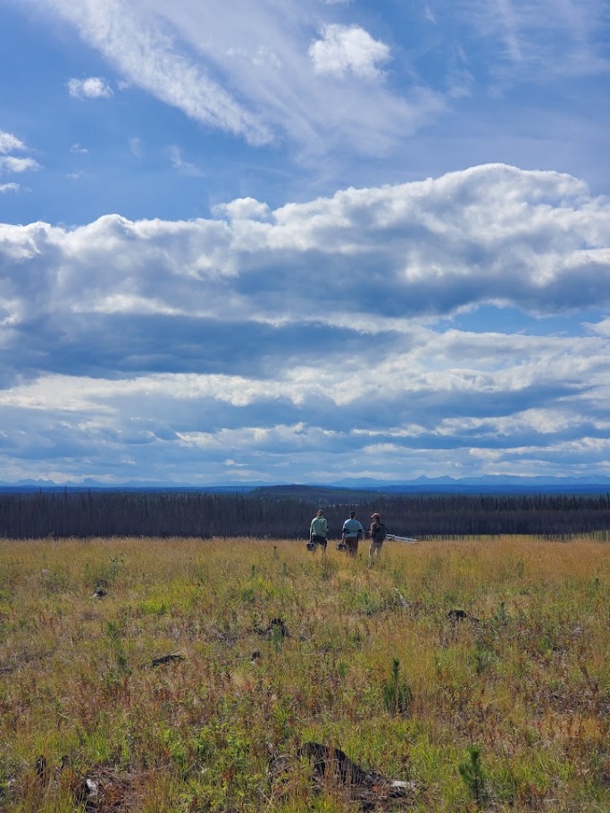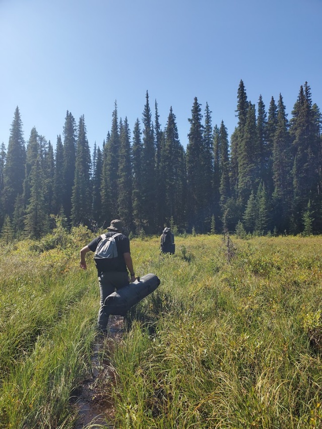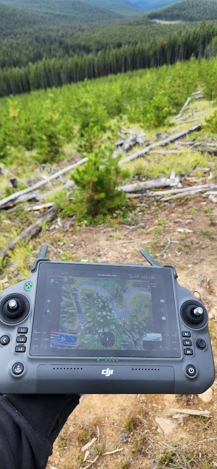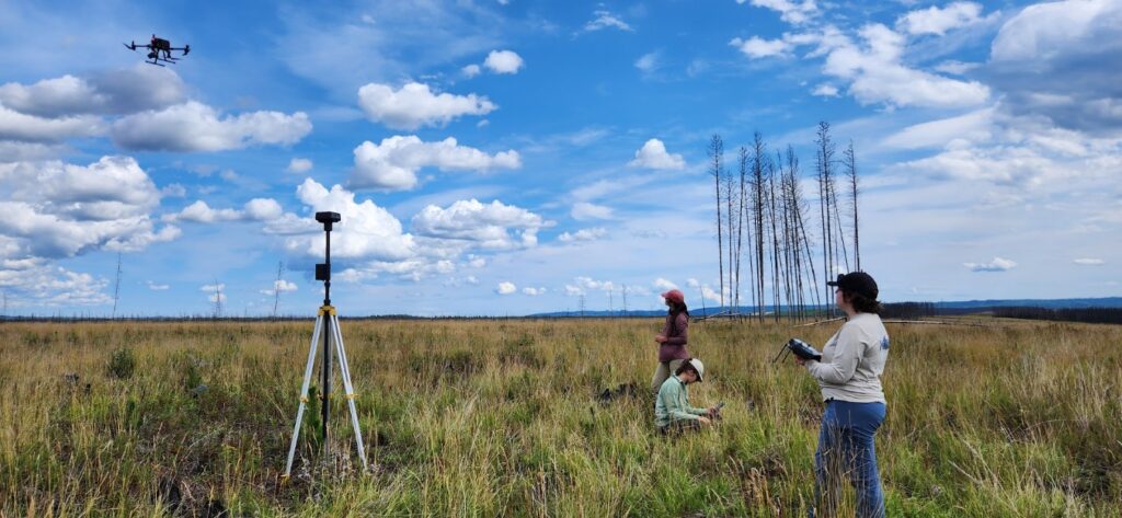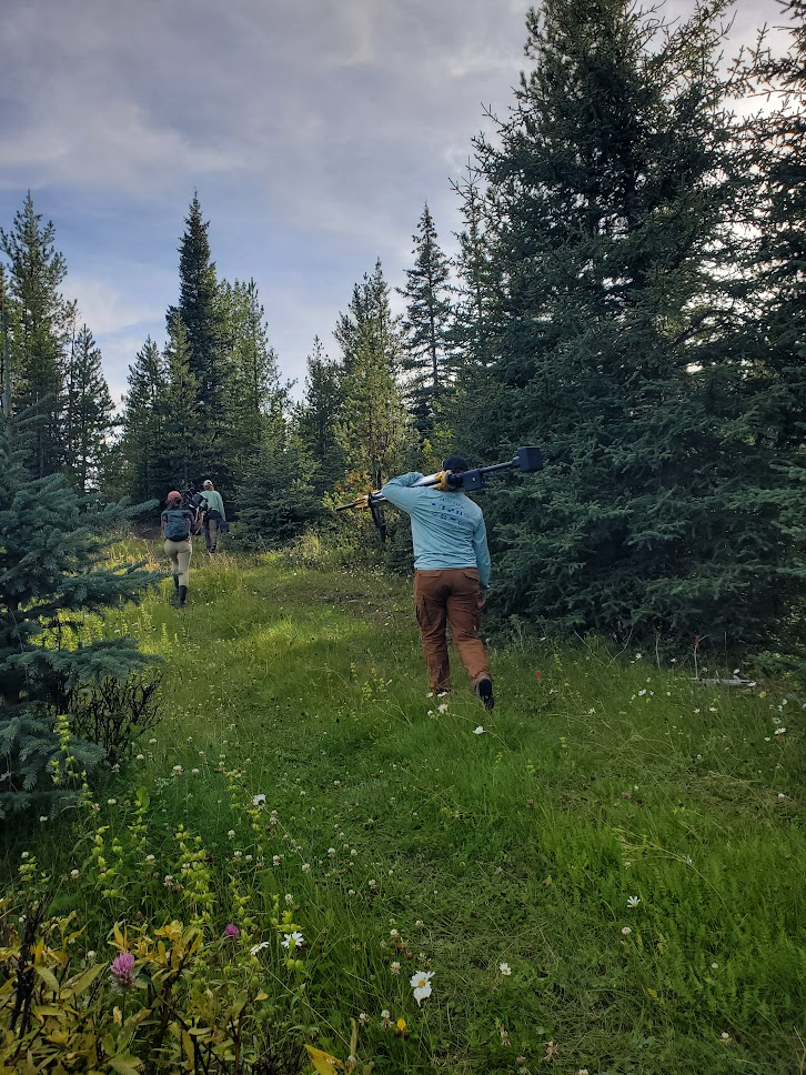 Leanna Stackhouse, a PhD candidate from the University of British Columbia, is helping to assess these streams by using a drone to collect high-density Light Detection and Ranging (LiDAR) and thermal imagery from each site. Her work will help to characterize riparian vegetation and outline the impacts of riparian disturbance on streams. Chad Alexis and Josiah Clow from Alexis Nakota Sioux Nation, also work with remote sensing tools and joined for a few days to help share ideas and knowledge during the fieldwork.
