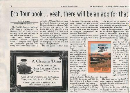 The book contains interpretive information about the human, ecological, and geological history of the Northern Rockies region, and the mobile application will provide an enhanced driving experience for travelers passing through the Ecotour landscape and wishing to know more about it. The driving “app” provides a live mapping interface (including GPS functionality), proximity-triggered audio for points of interest, and pop-up information windows that may be updated with new content by fRI Research staff. As most of the Ecotour is located in remote areas, the application will be internally stored (native), available and functional offline.