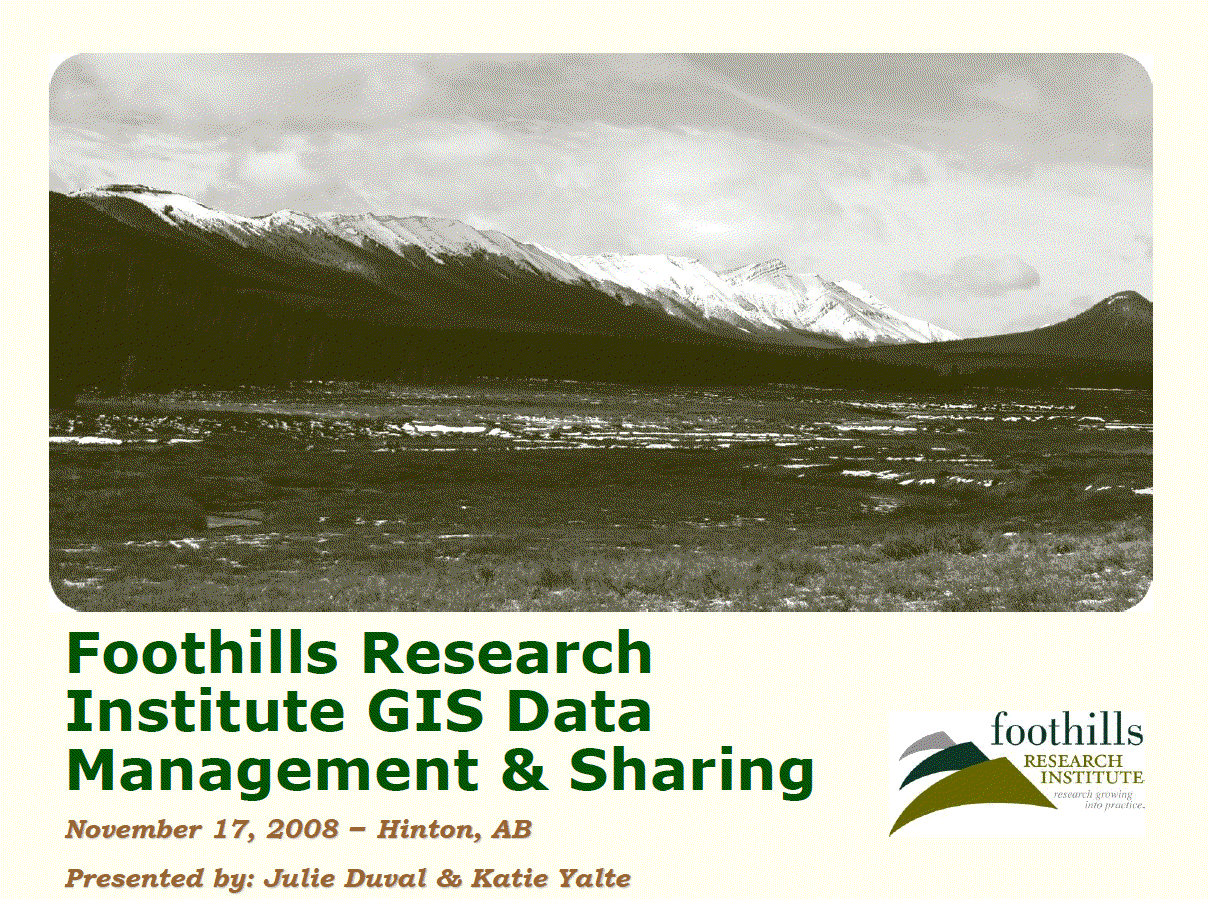 Foothills Research Institute GIS data management and sharing Presentation on the GIS Program, spatial data inventory, data sharing, and next steps of the program. Gallery Downloads GIS_2008_11_Prsnttn_ProgramDataSharing_thumb.gif GIS_2008_11_Prsnttn_ProgramDataSharing.pdf Author Duval, Julie ; Yalte, Katie Published Nov 01, 2008 Record Type Summaries and Communications Presentation Slides Related Programs GIS Services