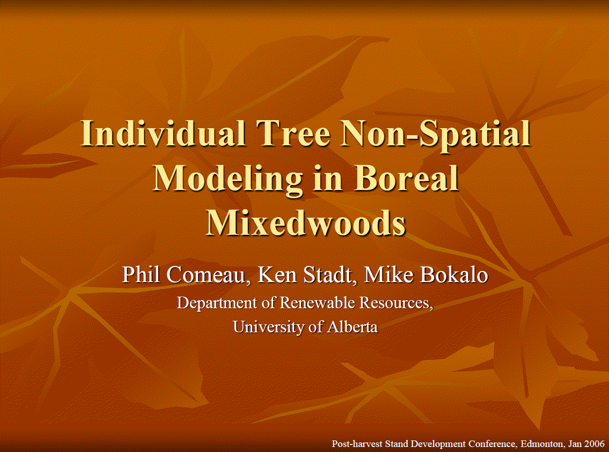 Presentation at Post-Harvest Stand Development Conference on characteristics, benefits and limitations of individual tree distance-independent models.