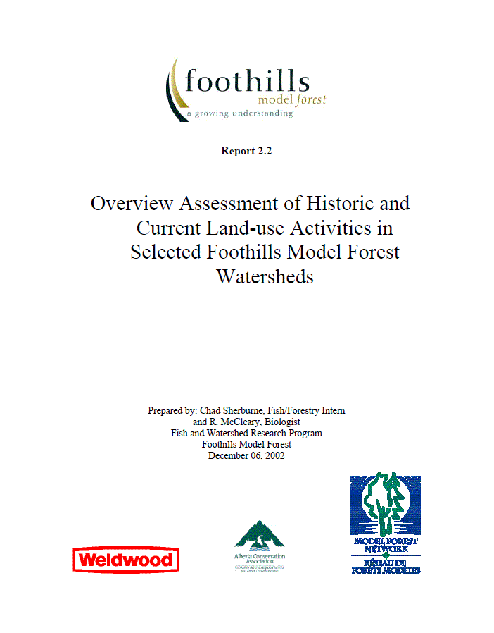 Report on study of land-use activities such as timber harvest and road development on aquatic habitats in some Foothills Model Forest watersheds.